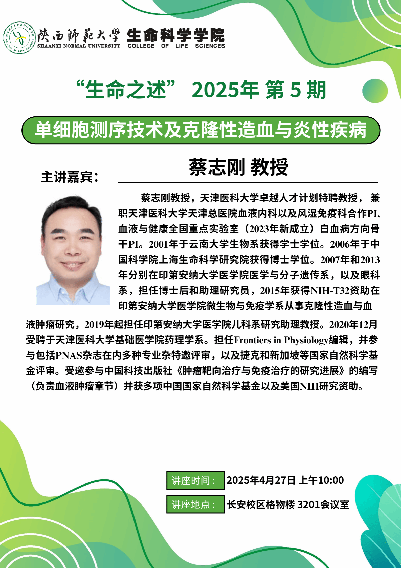 “生命之述”系列讲座 2025年 第5期 - 单细胞测序技术及克隆性造血与炎性疾病