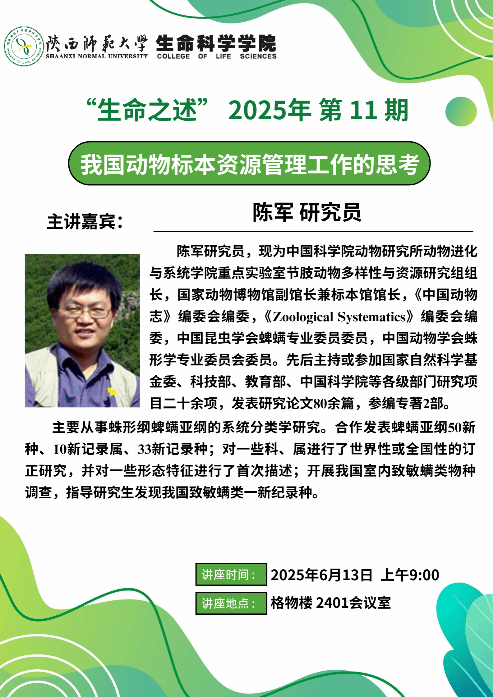 生命之述”系列讲座 2025年 第11期 - 我国动物标本资源管理工作的思考