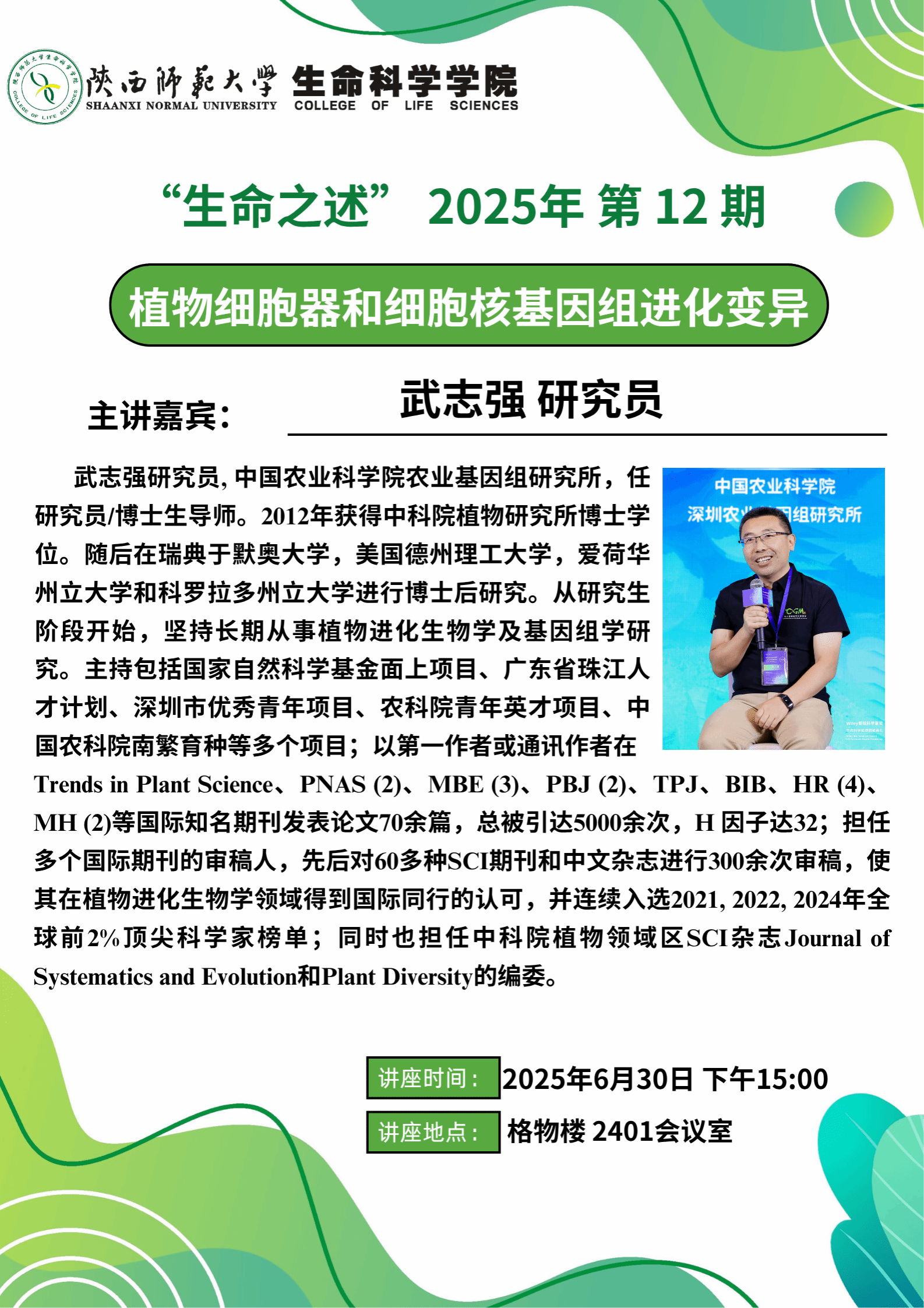 生命之述”系列讲座 2025年 第12期 - 植物细胞器和细胞核基因组进化变异