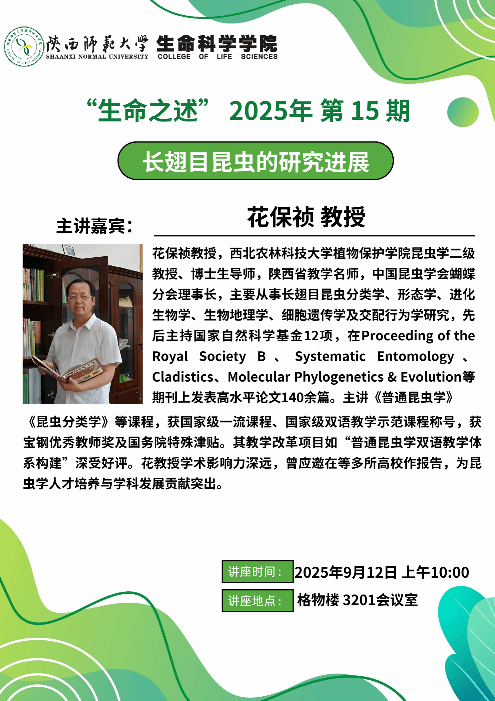 “生命之述”系列讲座 2025年 第15期 - 长翅目昆虫的研究进展