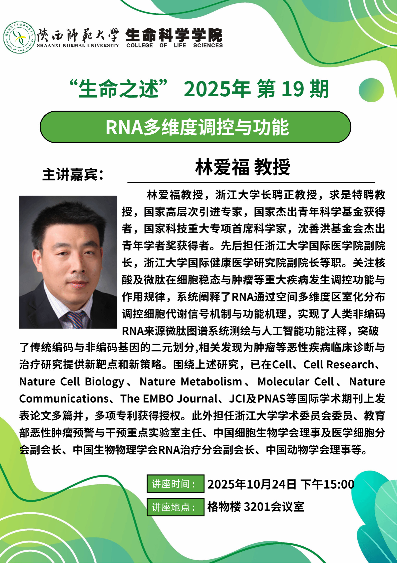 “生命之述”系列讲座 2025年 第19期 - “RNA多维度调控与功能”