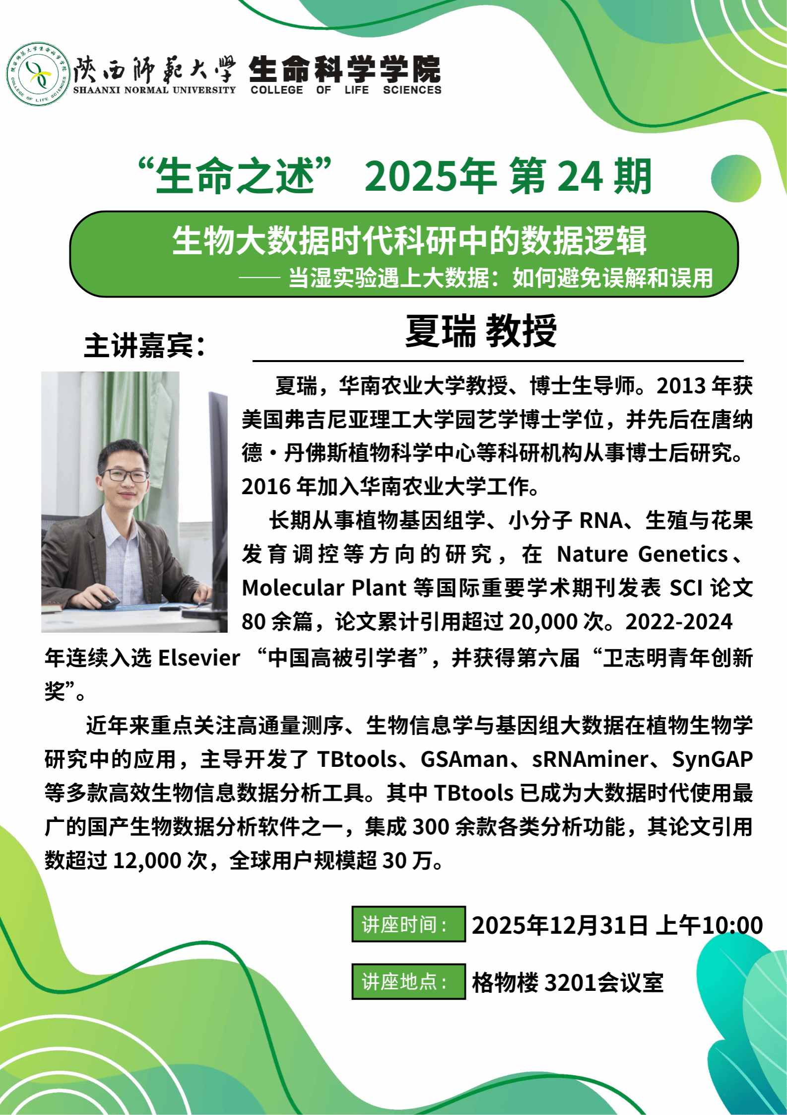 “生命之述”系列讲座 2025年 第24期 - “生物大数据时代科研中的数据逻辑 —— 当湿实验遇上大数据:如何避免误解和误用”