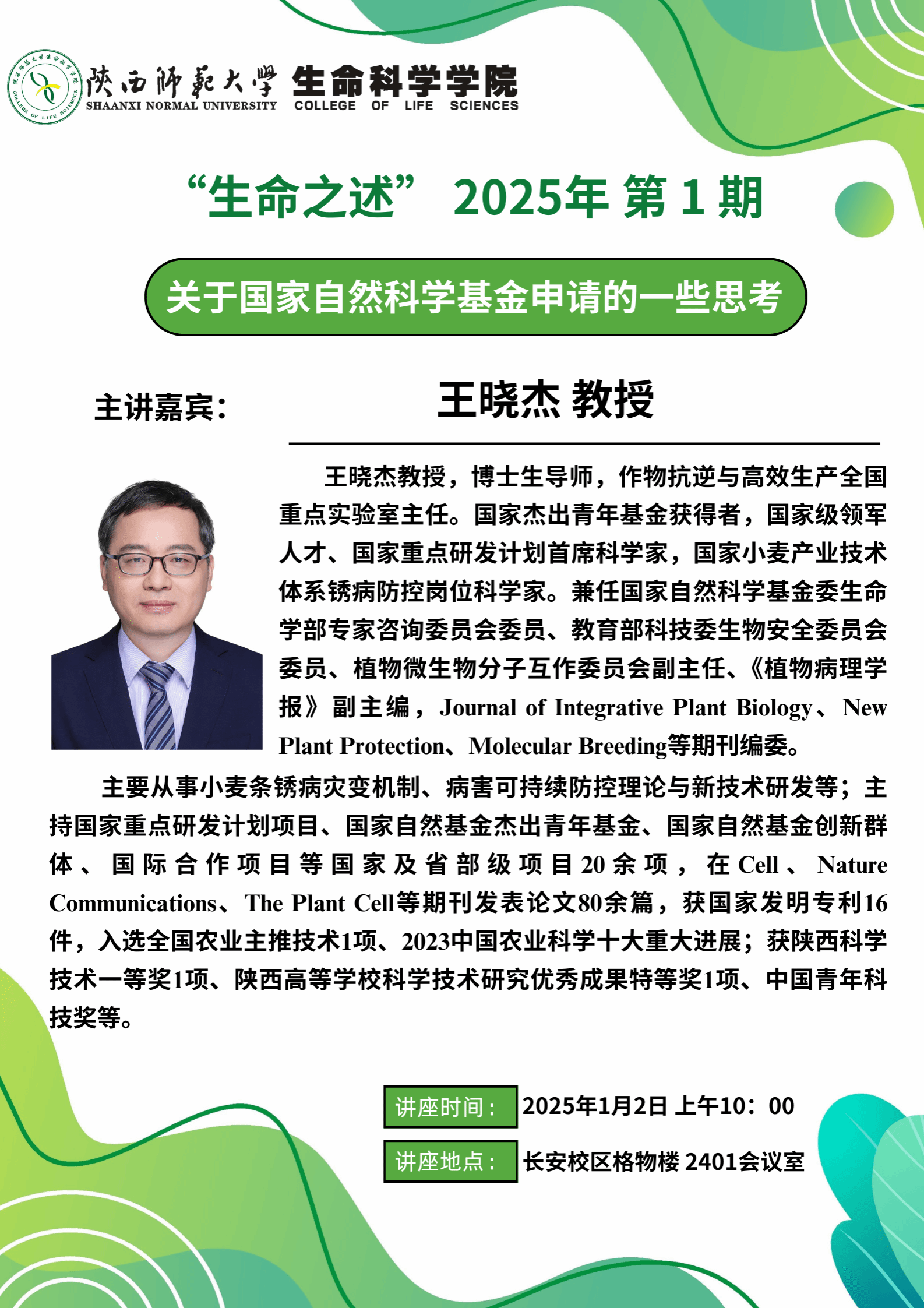 “生命之述”系列讲座 2025年 第1期 - 关于国家自然科学基金申请的一些思考