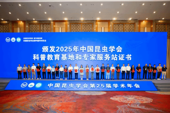 8月22日-25日,中国昆虫学会第25届学术年会在安徽省合肥市举办。会议期间,中国昆虫学会正式公布了2025年度“中国昆虫学会科普教育基地”认定名单,并举行授牌仪式,公司动植物博物馆成功入选。