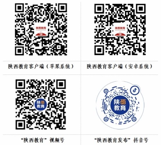 4.视频直播分会场:本次活动通过“陕西教育”客户端、“陕西教育”视频号、“陕西教育发布”抖音号全程直播,可扫描下方二维码下载、关注后收看。